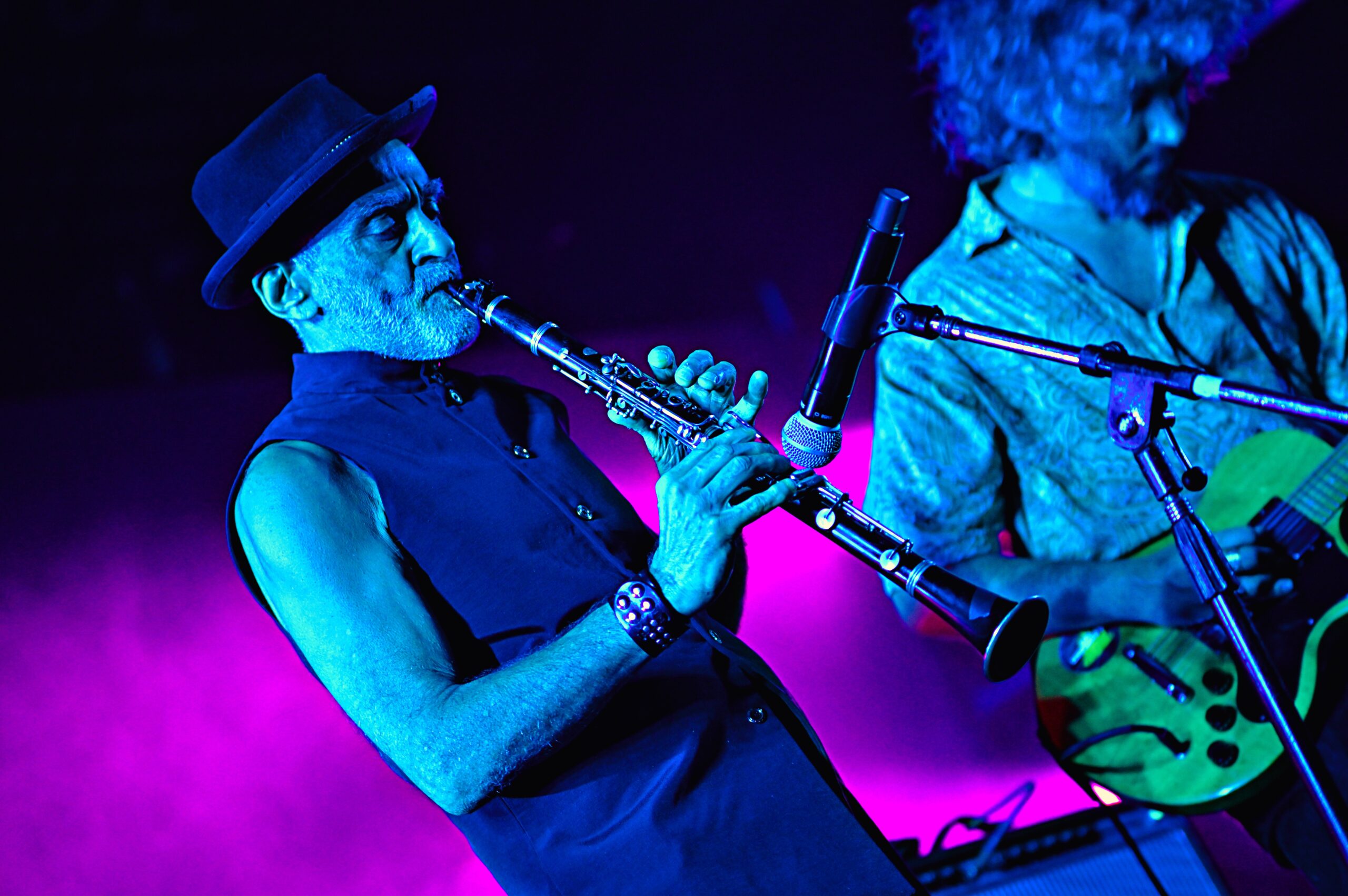 También conocido como El Linyera, el cantor reo de los Tangos Bajos, artífice fundacional de Los Abuelos de la Nada y Los Twist fue el primer invitado de la noche. Con su clarinete místico, cargado de delays y reverberancias, puso espacialidad al final de “Ramas” (La Montaña) para luego tomar el micrófono y cantar “Buscando la Luz” (Sancocho Stereo) junto a la voz de Maxi Prietto.